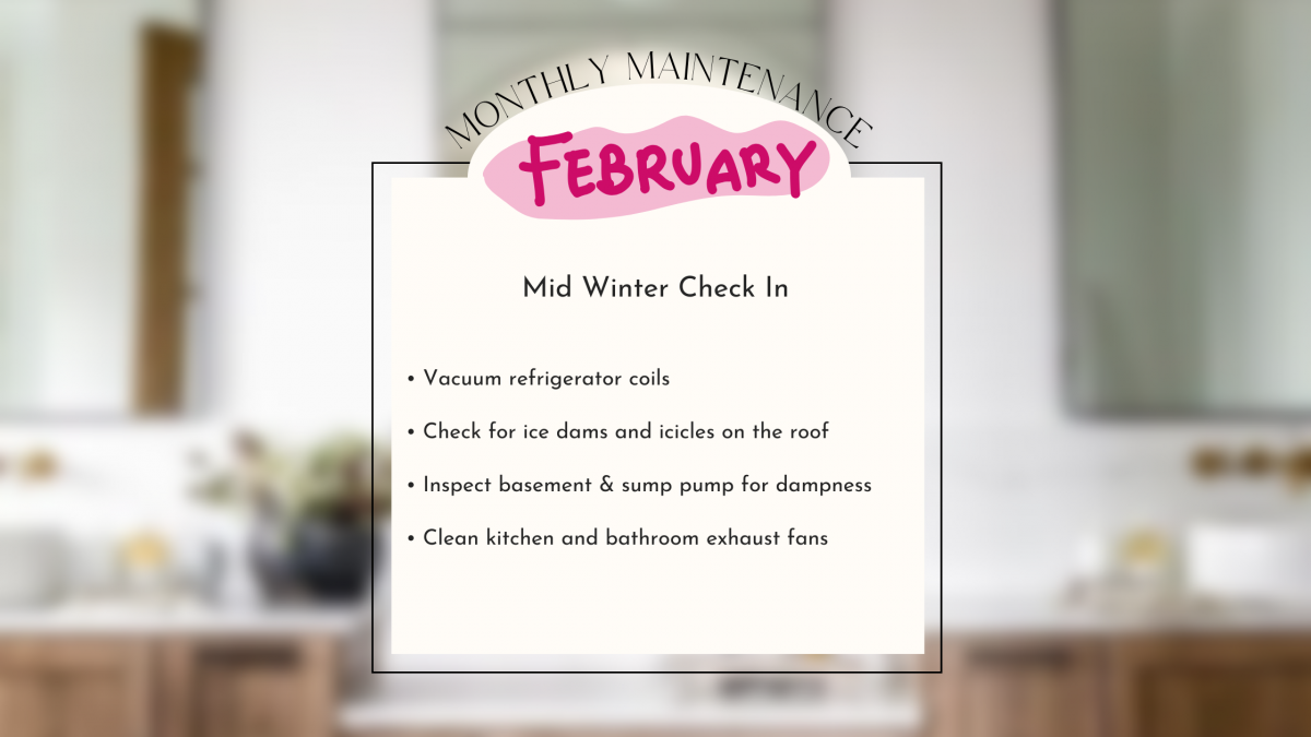 By February, winter is usually settled in. This year definitely isn’t typical, and it seems like we may be skipping most of the harsh cold and snow this season, but it’s still a good time for a mid winter check in around the house. These are not big projects, just a few small things that help keep your home running efficiently and help you spot potential issues before spring arrives.